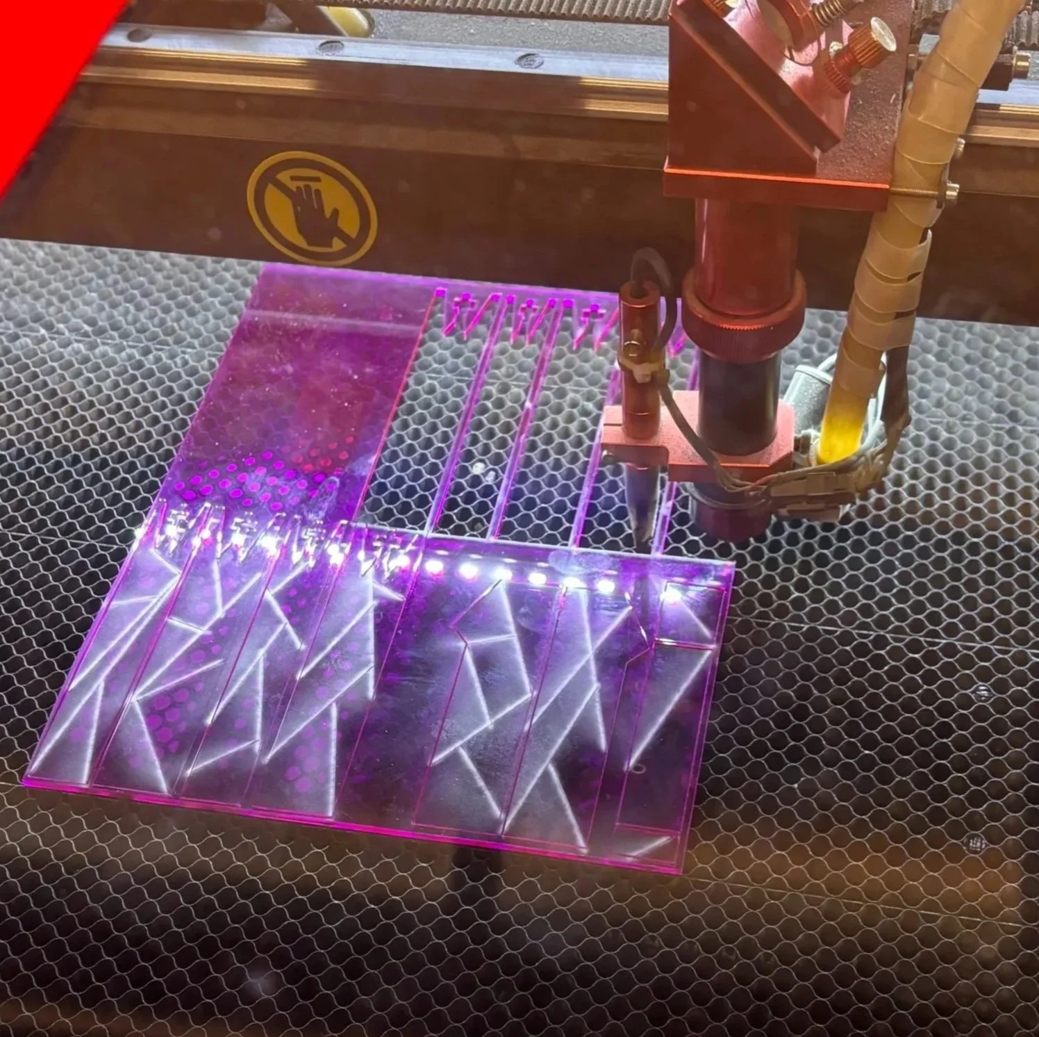 After deciding to stick with a single colored acrylic, there were options but landed on a magenta-colored acrylic for the final piece, giving it a vibrant, eye-catching finish.