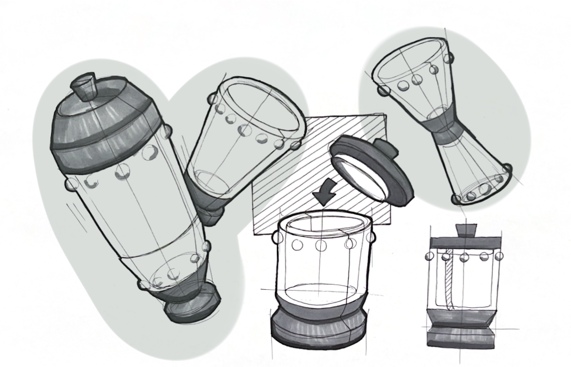 Design and create prototypes of a drinkware set for a specific drink and environment.