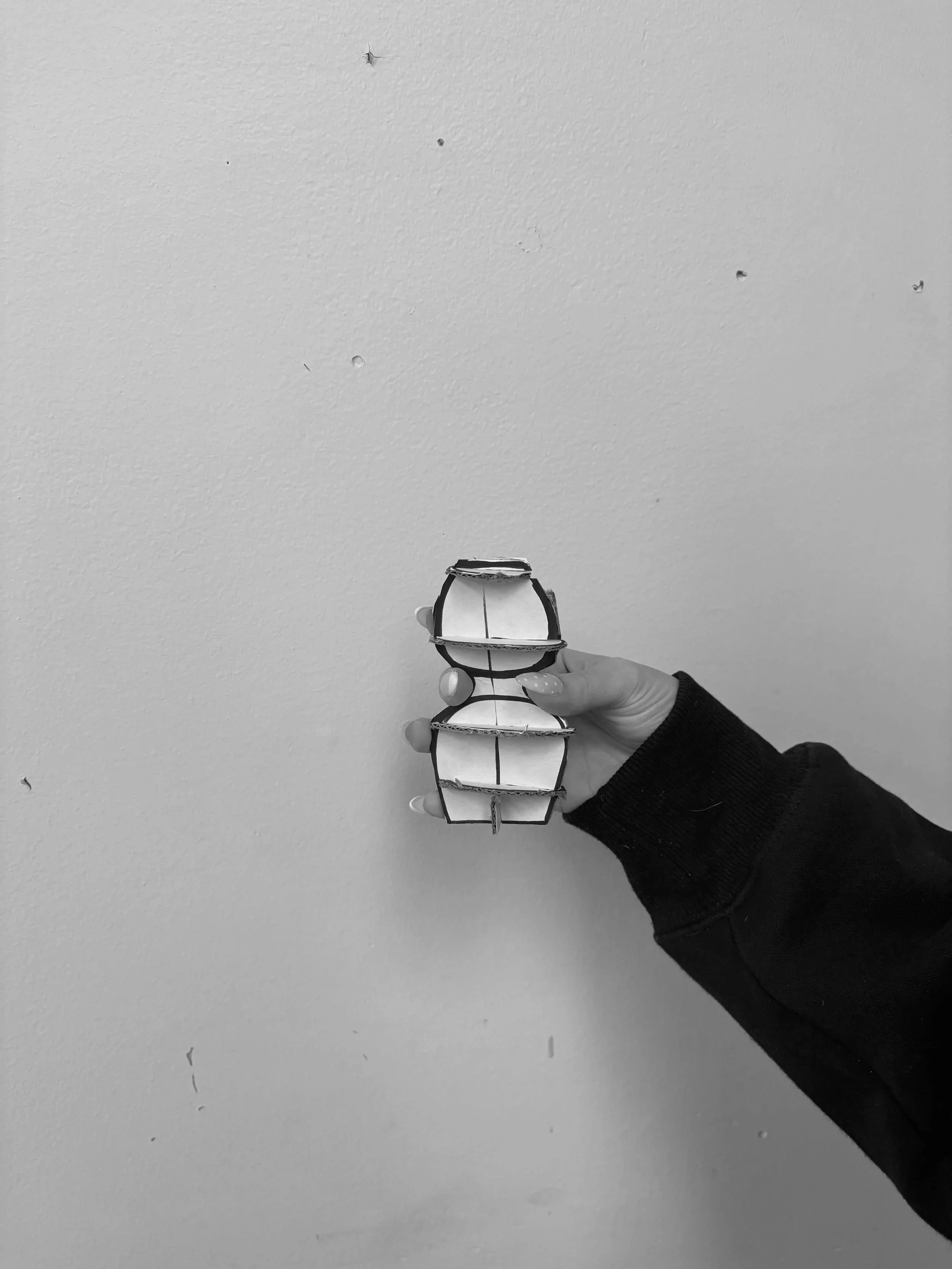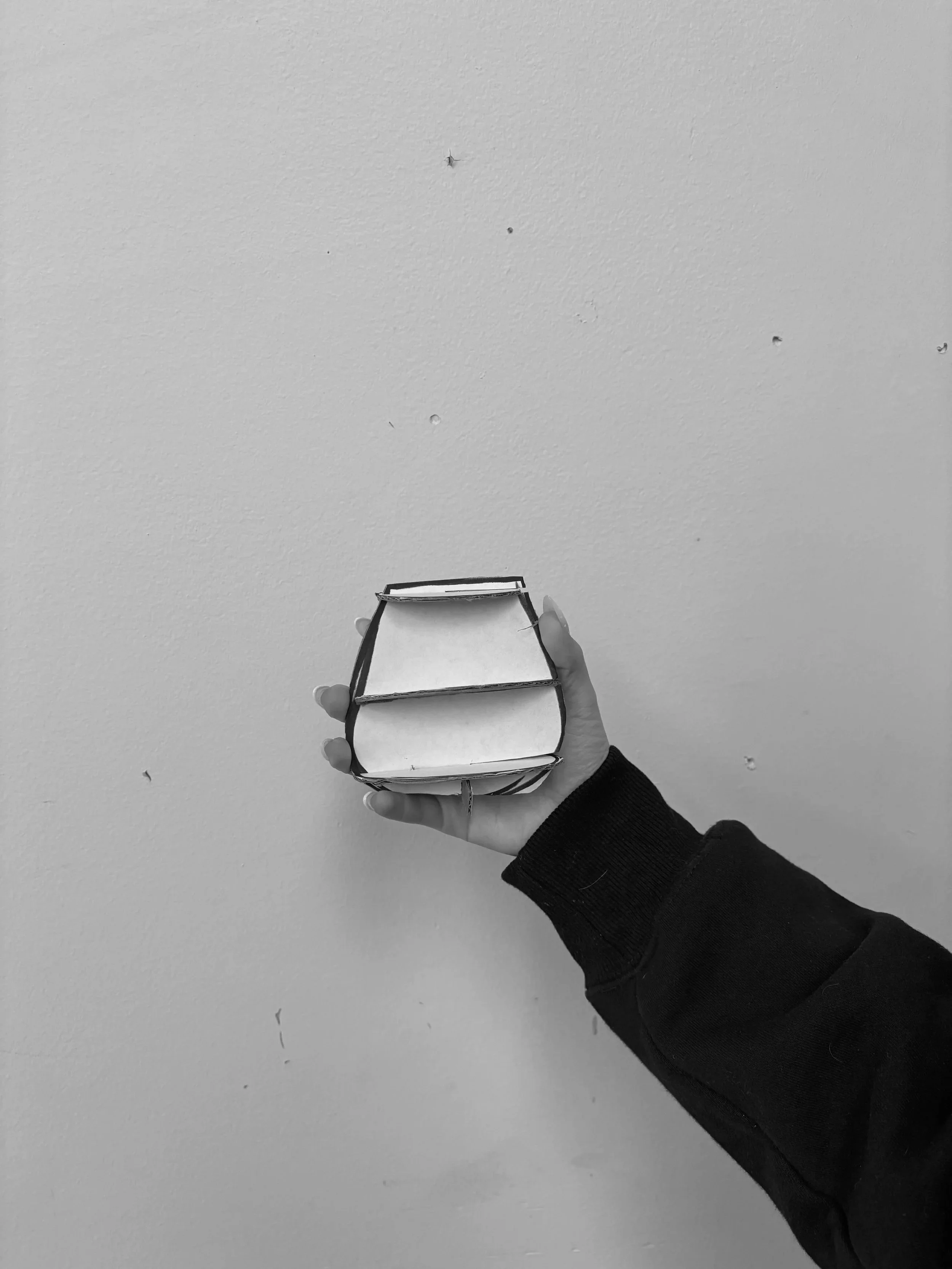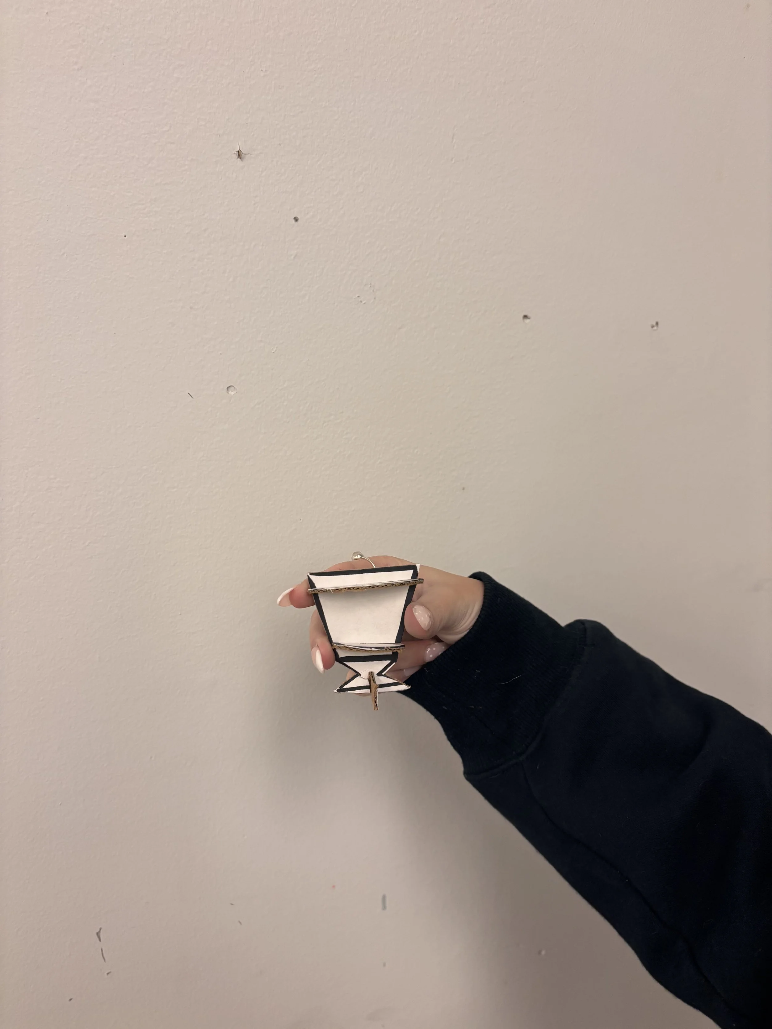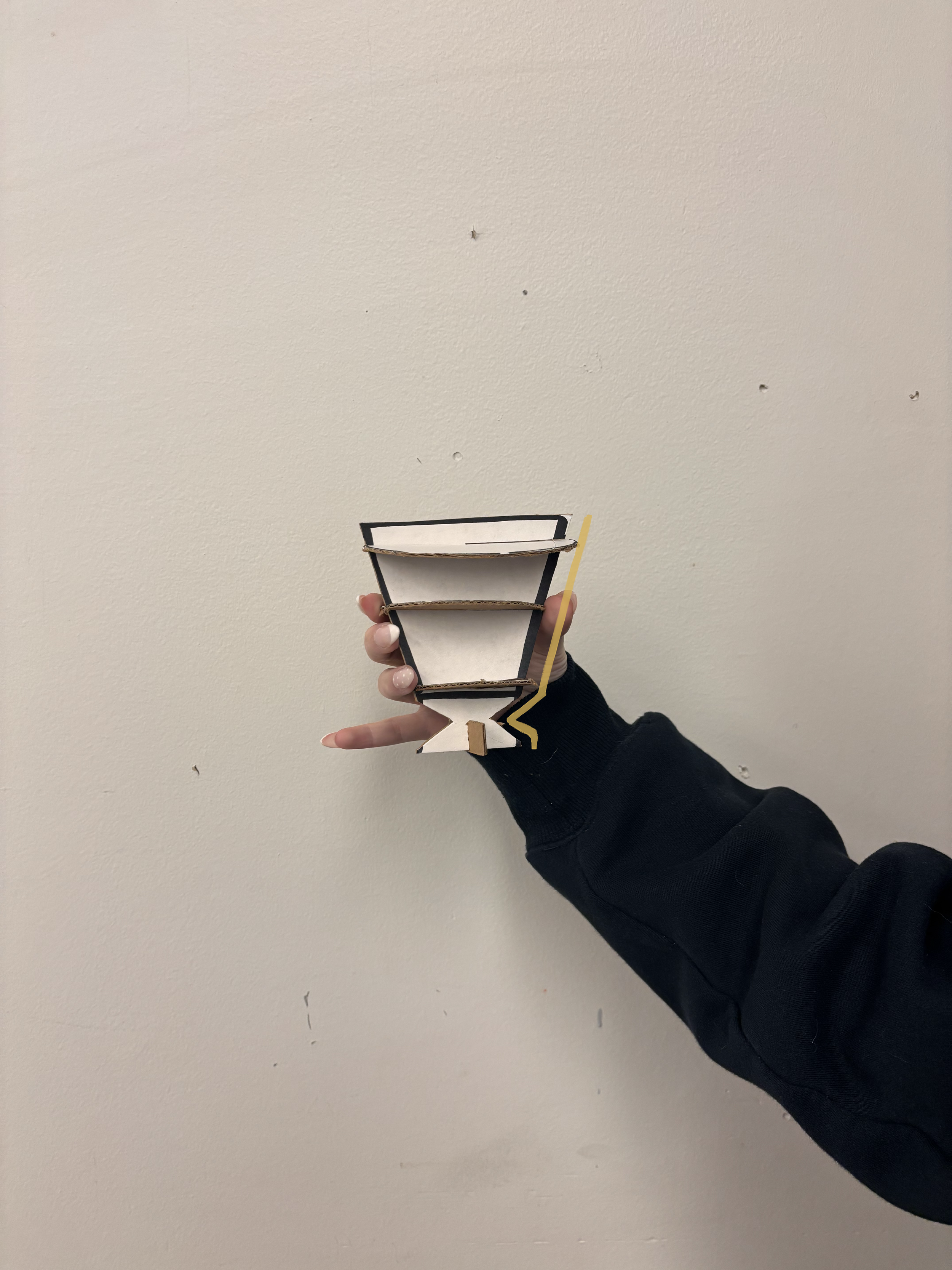 The triangular shaped glasses were decided on. Taking different aspects of the first prototypes helped to decide on a final design.